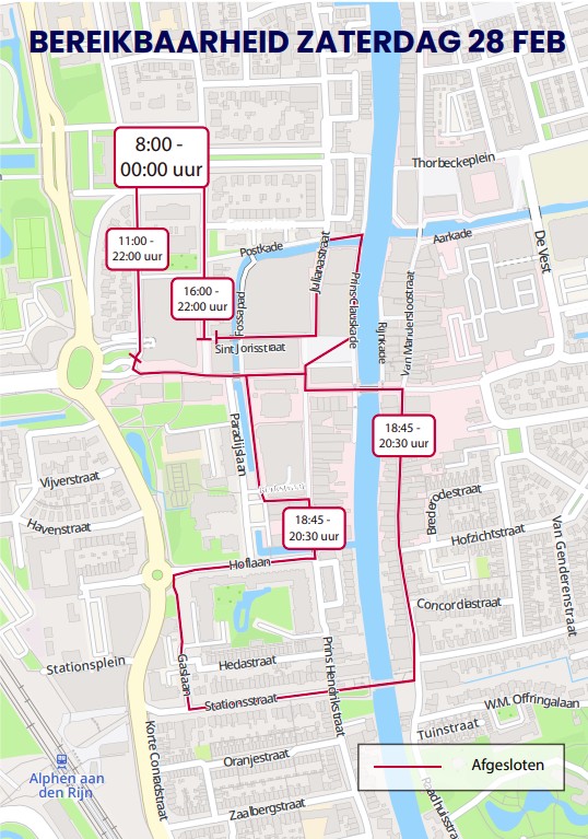 Op zondag 1 maart vindt de 59e editie van de 20 van Alphen plaats. De jaarlijkse hardloopwedstrijd trekt duizenden deelnemers en toeschouwers en voert door een groot deel van de stad. In verband met het evenement worden op zaterdag 28 februari en zondag 1 maart diverse verkeersmaatregelen getroffen.